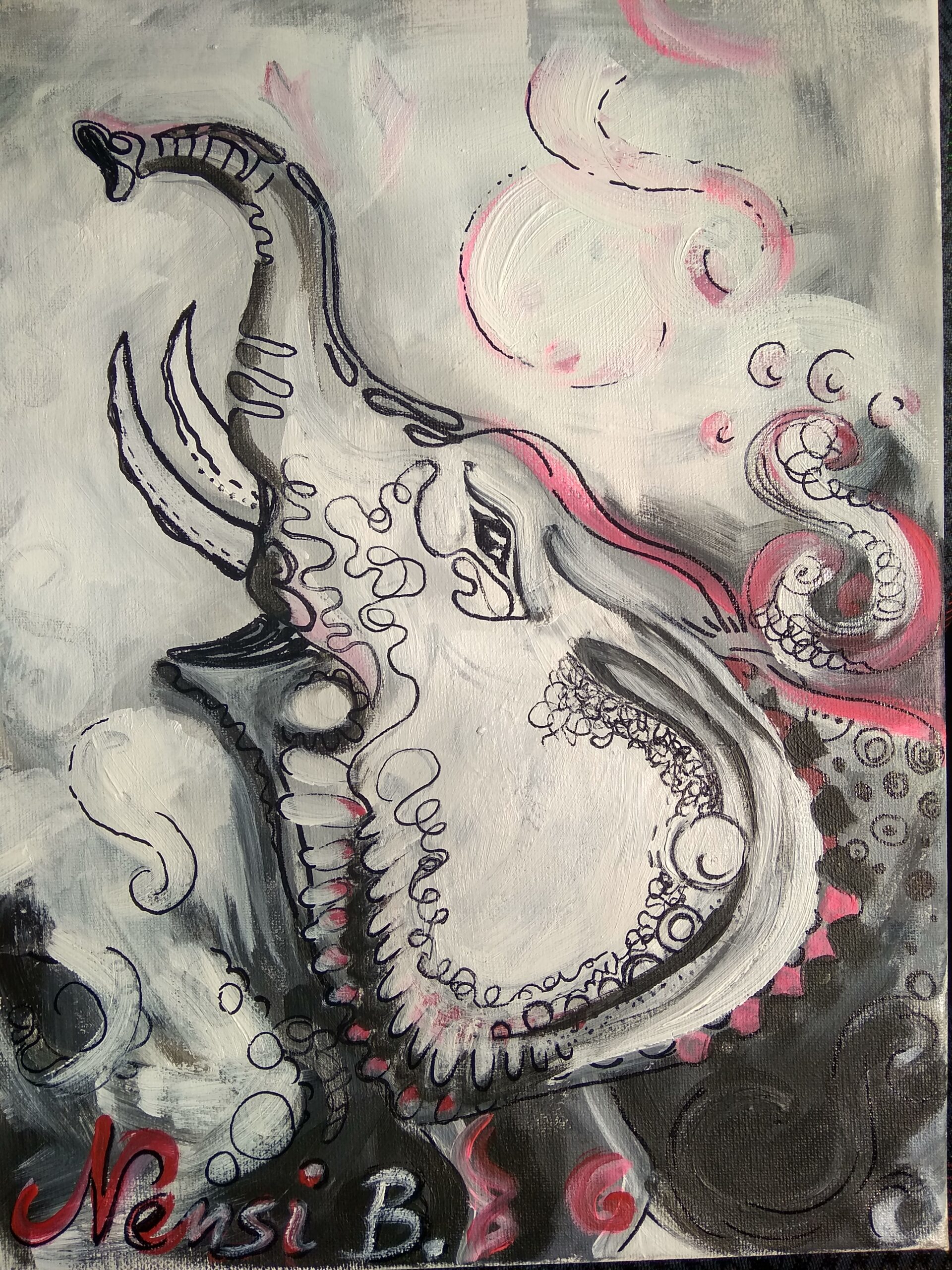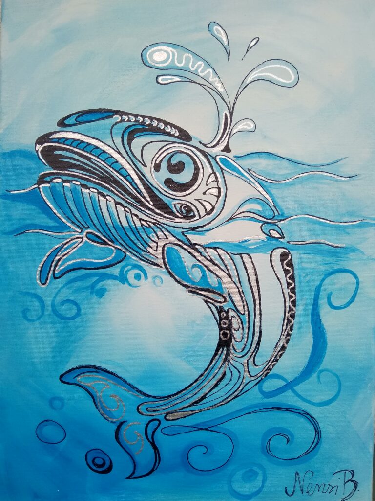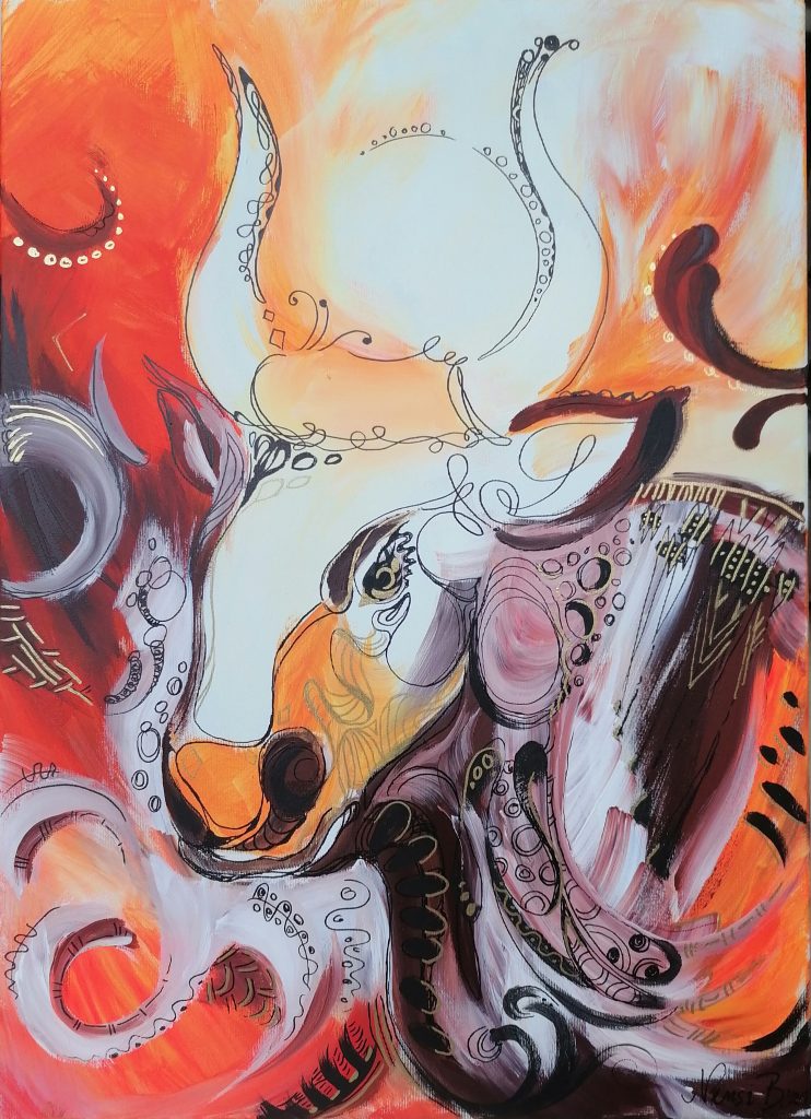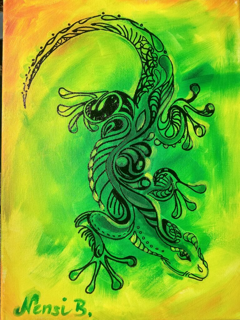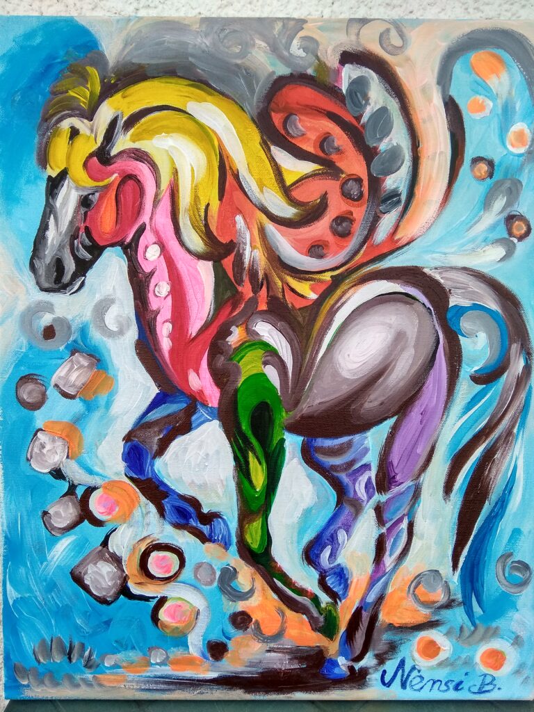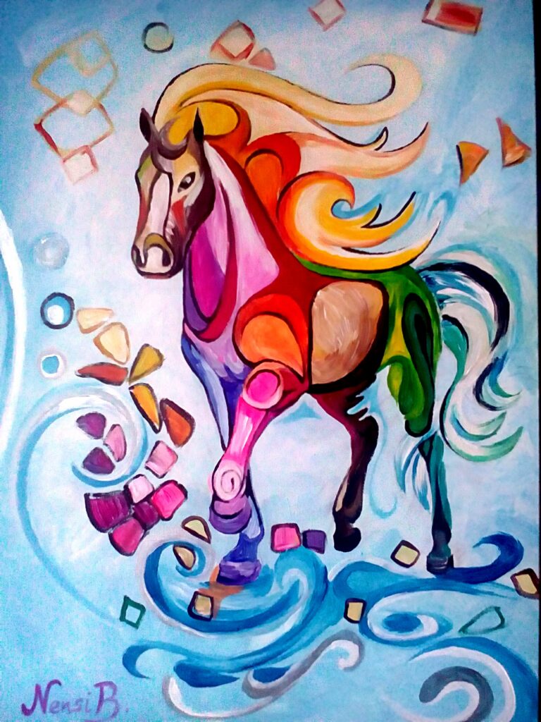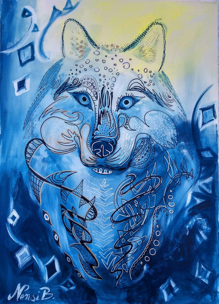 slike na platnu tehnikom akrilnih boja u kombinaciji sa linijama markera