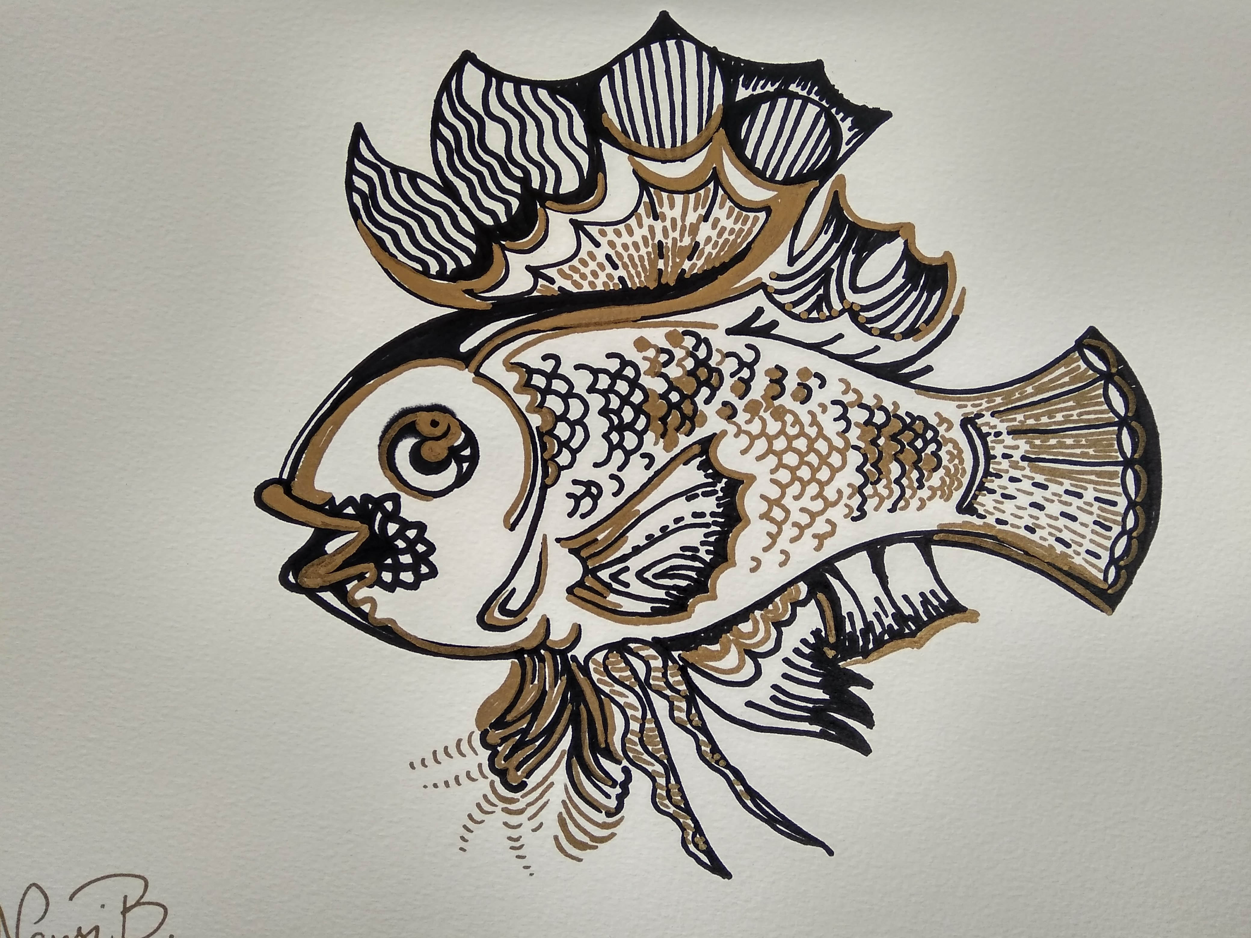 crteži na papiru sa zlatnim, srebrnim i crnim markerima